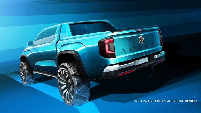 폭스바겐은 "이번 디자인은 양산 차량에 가까운 모습"이라며 "레터링은 아마록의 시그니처이며, 전면부 디자인은 다재다능함을 상징한다"로 설명했습니다. 더물어 "후면부에는 카리스마 넘치는 아마록 시그니처를 부여하고 동시에 더블캡의 시각적 연장선인 스타일링 바를 장착해 역동적이고 공격적인 차체 비율을 가졌다" 라고 설명했습니다.